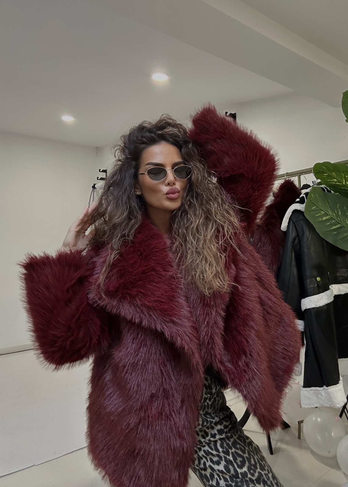 Atrage toate privirile cu haina de blana Elysian Dream Burgundy, confecționată din blană ecologică foarte moale într-o nuanță intensă de roșu. Perfectă pentru femeia modernă și încrezătoare.